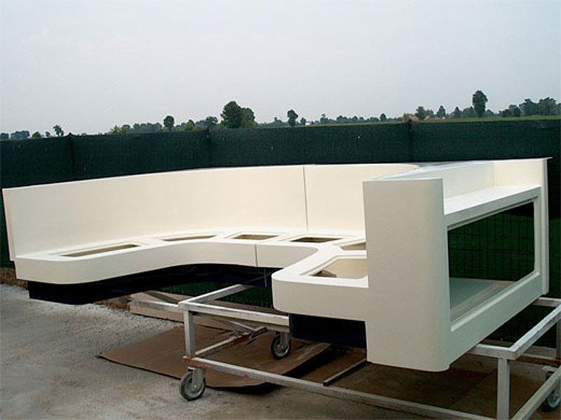 - Lavorazione con qualsiasi tipo di resina poliestere ( orto, iso, d.c.p., vinilestere ) e utilizzo di qualsiasi tipo di rinforzo, mat, rowing, accoppiati, compositi, biassiali, unidirezionali, in carbonio e kevlar.